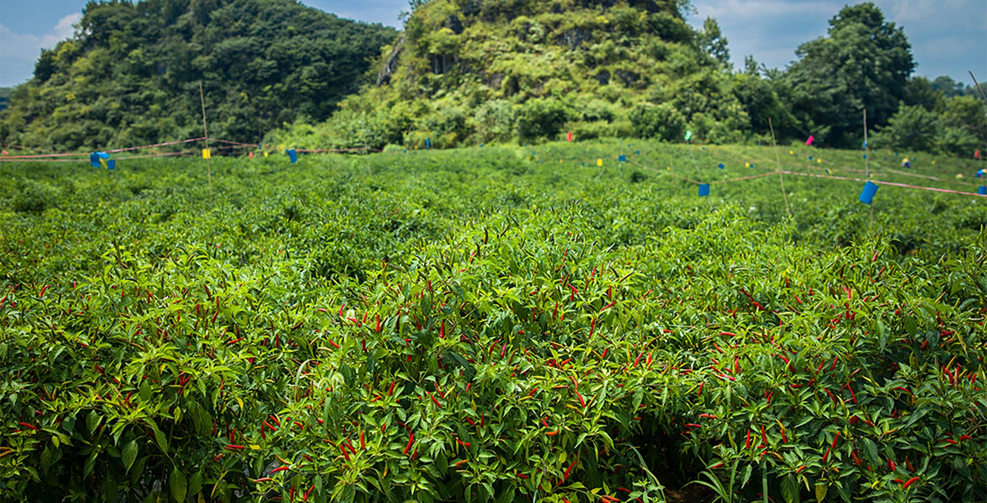 贵州地处北纬24-29°没有污染的云贵高原,平均海拔1200米,天然隔离,病虫害少;冬暖夏凉,气候宜人,冷月平均气温3-6℃,热月平均气温22-25℃;降水量在1100-1300mm之间,森林覆盖率高达58.5%,负氧离子高,PM2.5监测值低,空气质量好,为高品质辣椒的种植栽培提供很好的自然条件。独特的地理环境,孕育出肉质饱满的灯笼椒、香辣味强烈的二荆条等名椒。